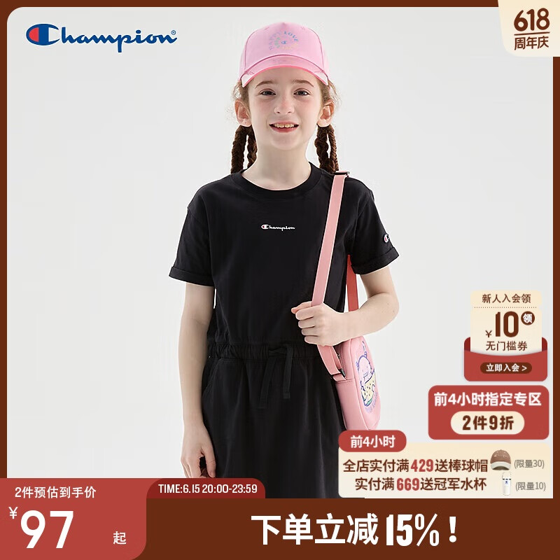 Champion冠军女童连衣裙2025夏季新款大小童时尚净色简约休闲儿童裙子潮