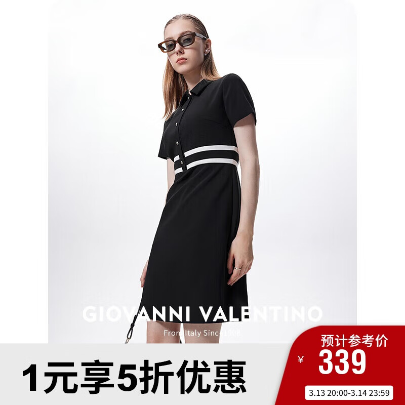 卓凡尼·华伦天奴(GIOVANNI VALENTINO)短袖连衣裙女士春夏季时尚撞色条纹POLO裙遮腰显瘦裙子 黑色 S