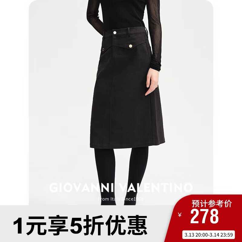 卓凡尼·华伦天奴(GIOVANNI VALENTINO)女士A字半身裙春季修身显瘦时尚弹力半裙通勤休闲裙子 黑色 S
