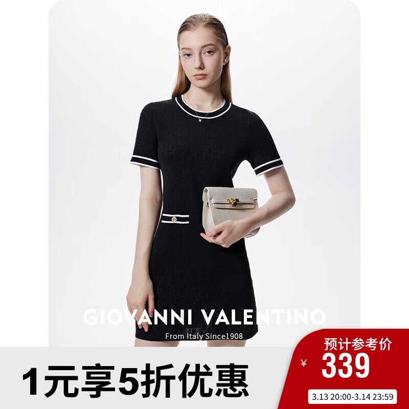 卓凡尼·华伦天奴(GIOVANNI VALENTINO)针织连衣裙女士夏季小香风a字裙圆领休闲显瘦裙子 黑色 S
