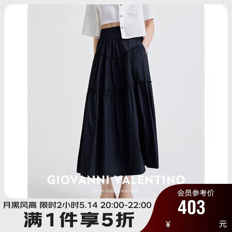 卓凡尼·华伦天奴(GIOVANNI VALENTINO)春夏季女士黑色半身裙A字裙子高级感中长裙 黑色 M