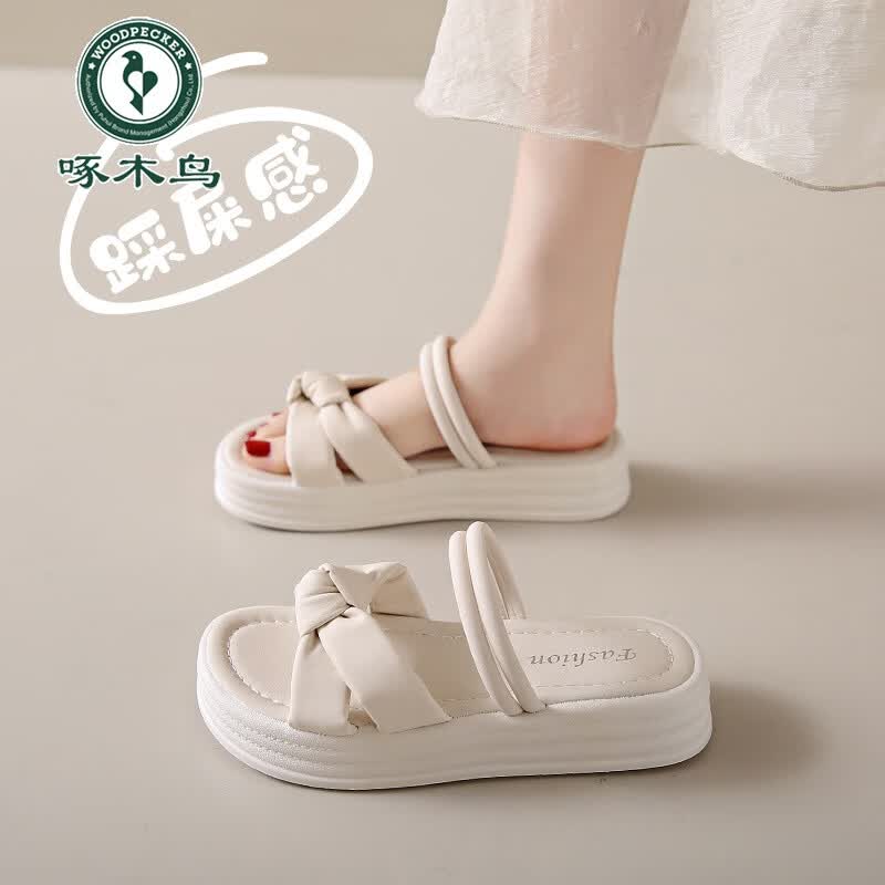 啄木鸟踩屎感软底两穿凉鞋女2025新款夏季凉拖鞋外穿孕妇鞋配裙子沙滩鞋 米白色 36