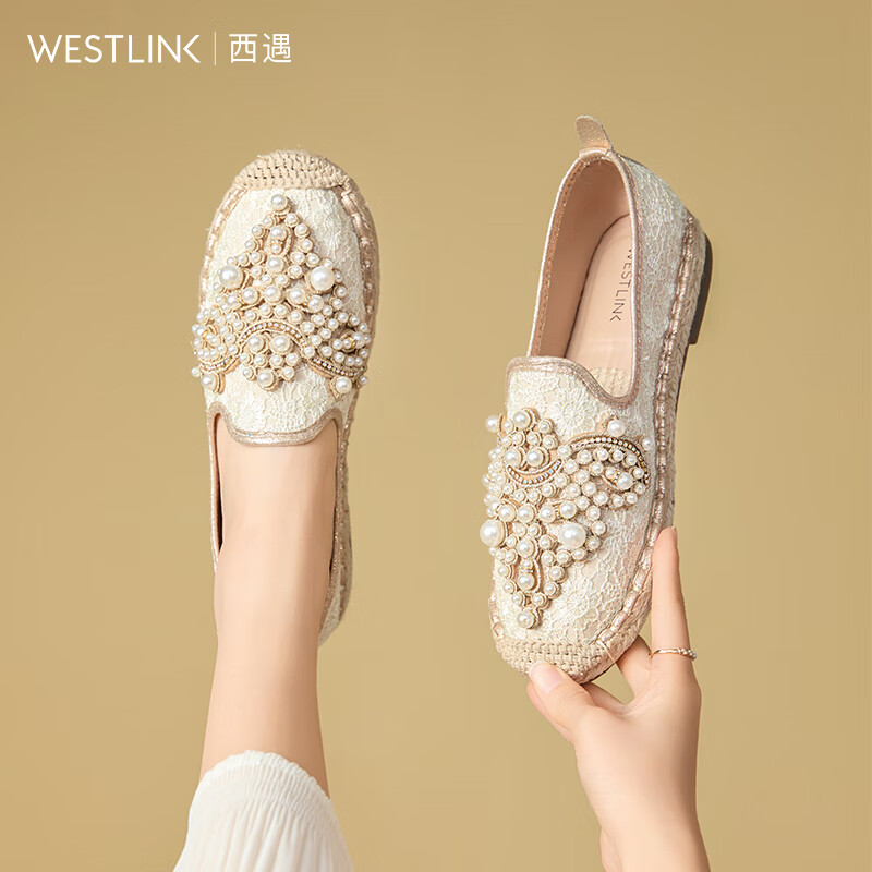 西遇小香风渔夫鞋女2025新款春夏法式一脚蹬平底鞋配裙子单鞋 米色 37
