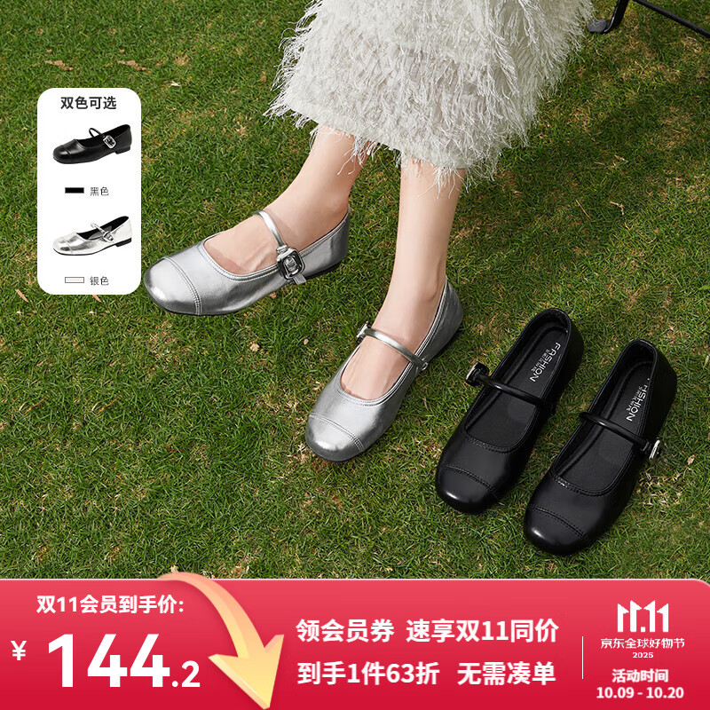 西遇玛丽珍女鞋2025新款春夏法式配裙子气质圆头软底平底鞋银色单鞋 黑磨色 36