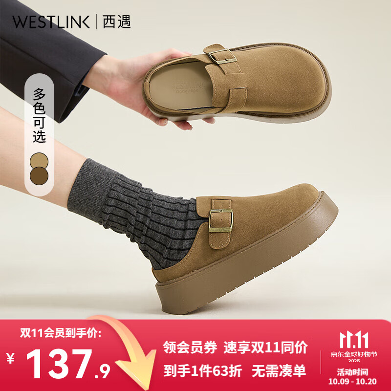 西遇厚底勃肯鞋女2025新款春季复古休闲配裙子舒适增高一脚蹬半拖 棕黄色 37