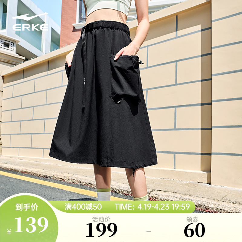 聚划算:正黑 S 鸿星尔克运动半身裙女2025夏季新款休闲百搭工装裙中腰显瘦长裙子