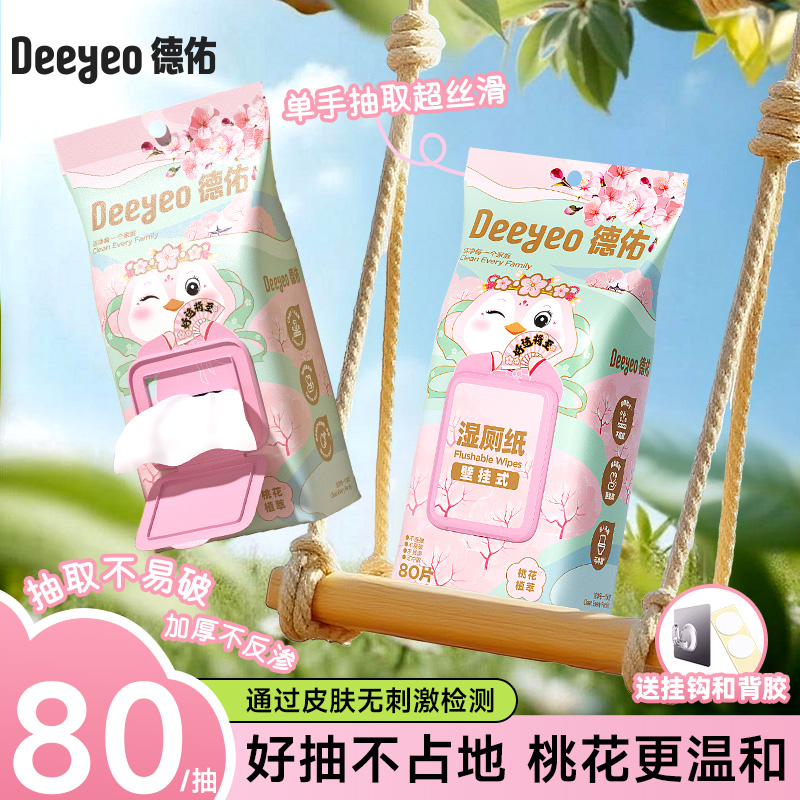 百亿补贴:红雨沁皙 桃花精华 1包 德佑悬挂湿厕纸桃花家庭实惠装女性湿巾孕妇女士专用厕所悬挂湿纸