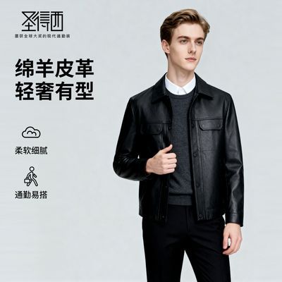 百亿补贴:【真绵羊皮】圣得西高端翻领真皮皮衣2025秋季新款商务皮夹克外套