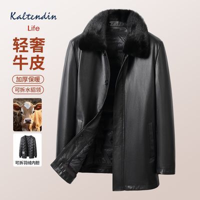 百亿补贴:【100%牛皮革&水貂毛领&鸭绒内胆】卡尔丹顿Life秋冬男士翻领皮衣