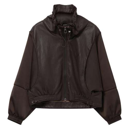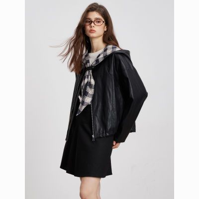 百亿补贴:Basic House/百家好圆领酷飒皮衣外套女2025秋季新款独特短款上衣