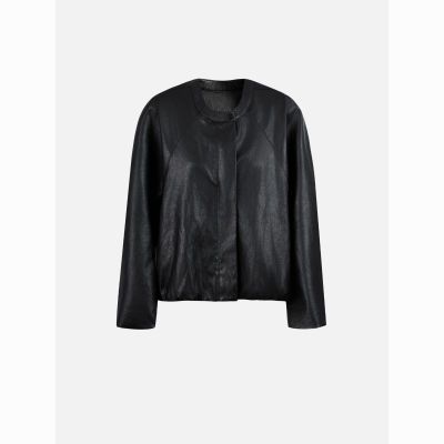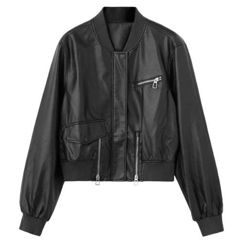百亿补贴:Basic House/百家好圆领PU皮衣外套女2025年秋季新款夹克上衣短款