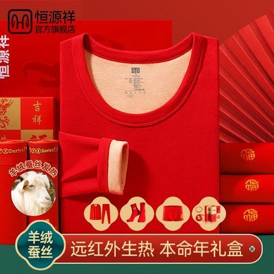 百亿补贴:恒源祥本命年保暖内衣结婚礼物男士内裤袜子女大红色秋衣秋裤套装