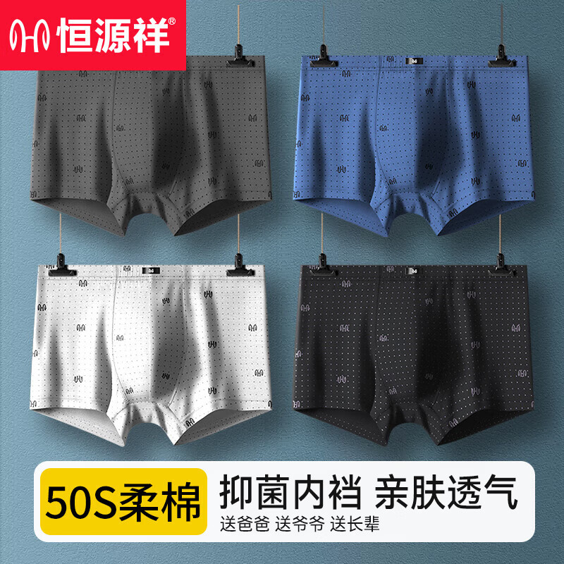 百亿补贴:恒源祥【长绒棉艾草抑菌】纯棉男士内裤男四角短裤头精梳棉宽松平角裤衩