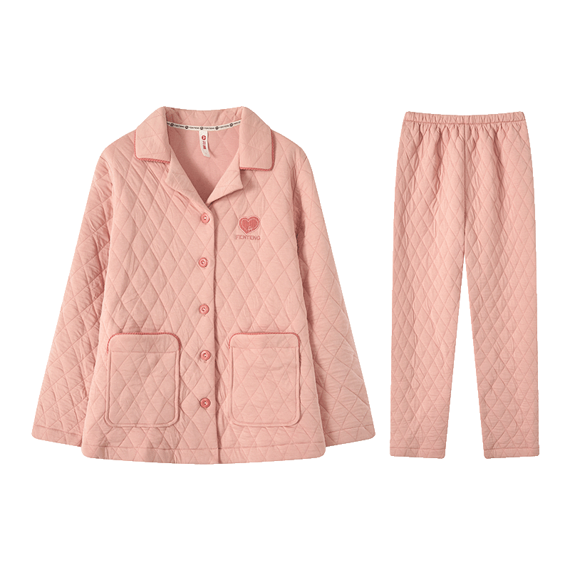 红豆居家(Hodohome)【加绒加厚】秋冬保暖印花女士开衫长袖睡衣套装甜美居家服可外穿 蜜橘粉 M 女士165