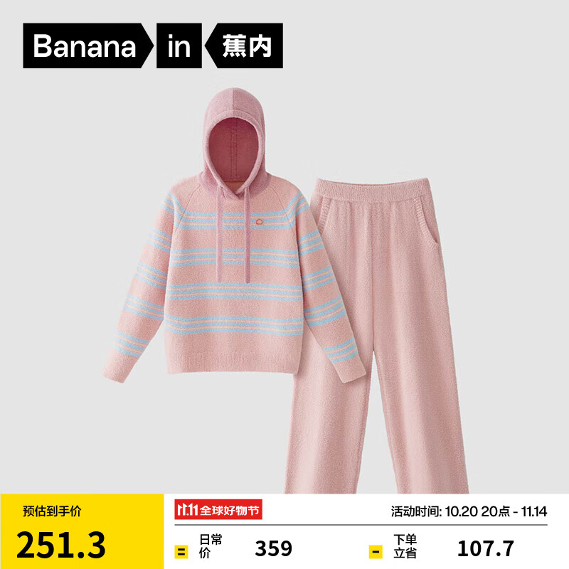 蕉内绒绒5系睡衣男女士连帽长袖长裤可外穿保暖情侣家居套装秋冬季 【女士圆领】茶粉 M