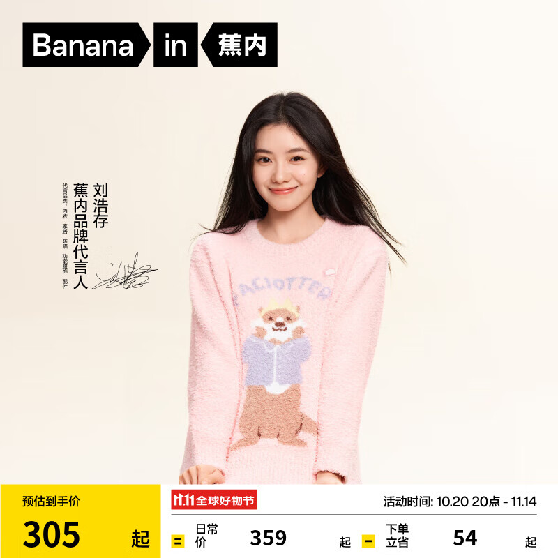 蕉内【刘浩存同款】绒绒520H睡衣男女士保暖加厚半边绒情侣家居服冬季 【刘浩存同款】搓脸獭-羽粉 M
