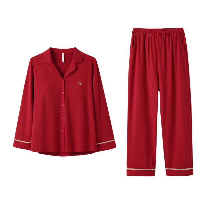 百亿补贴:安之伴【蛇年红品】情侣睡衣春秋莫代尔长袖女带胸垫本命年家居服套装 男-好运红(显白又透气) 2XL