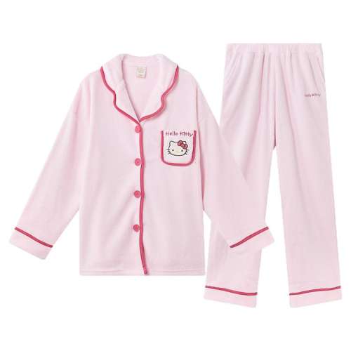 百亿补贴:浅雾粉套装 S Gukoo/果壳睡衣女士冬Hellokitty款绣花甜美加绒可外穿家居服套装
