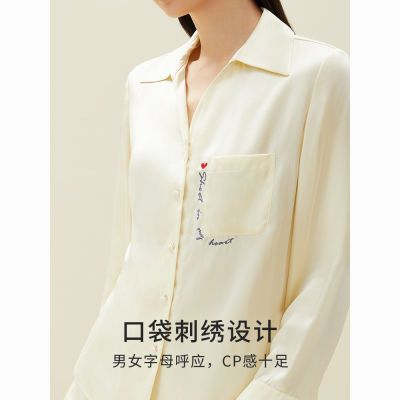 百亿补贴:金三塔100%桑蚕丝情侣爱心刺绣衣裤套真丝睡衣