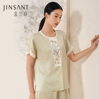 百亿补贴:金三塔凤穿牡丹】新中式刺绣重磅真丝睡衣女100%桑蚕丝宽松衣裤套