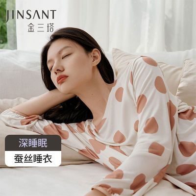 百亿补贴:【深睡眠蚕丝睡衣】金三塔真丝针织睡衣女波点印花宽松家居服套装