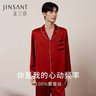 百亿补贴:JINSANT金三塔100%桑蚕丝睡衣男爱心桑波缎红色婚庆情侣家居服