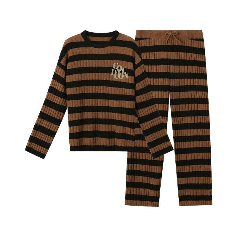 金利来男士睡衣男女秋冬加绒加厚家居服情侣长袖长裤宽松休闲可外穿套装 女-豆蔻棕 M