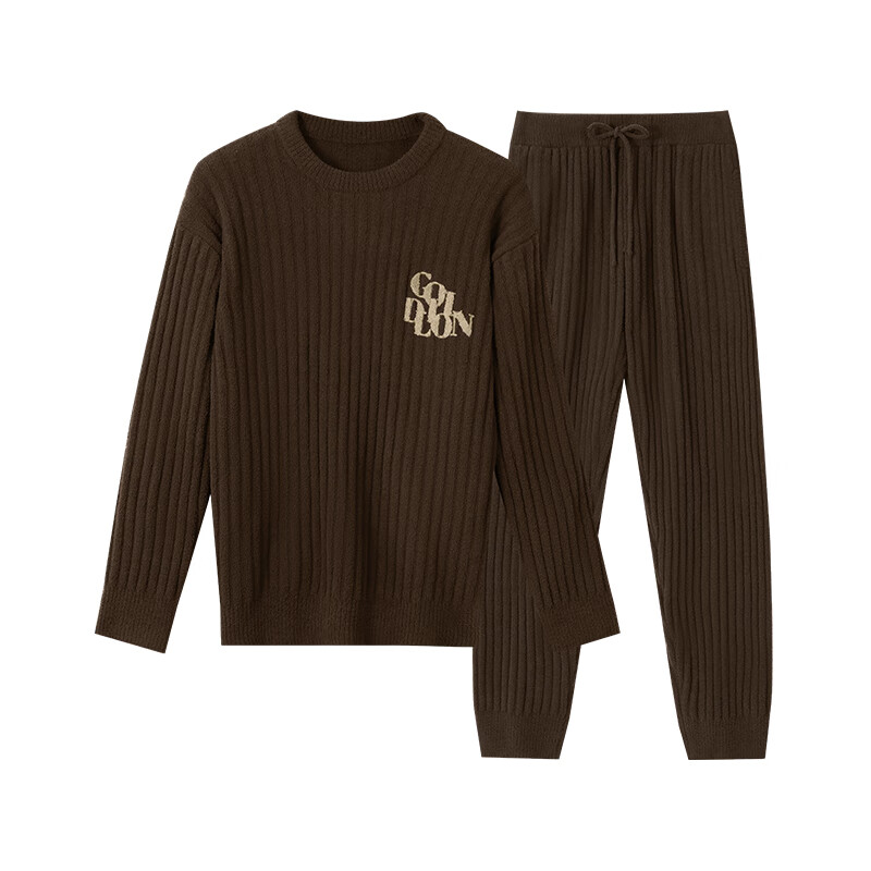 金利来男士睡衣男女秋冬加绒加厚家居服情侣长袖长裤宽松休闲可外穿套装 男-豆蔻棕 XL