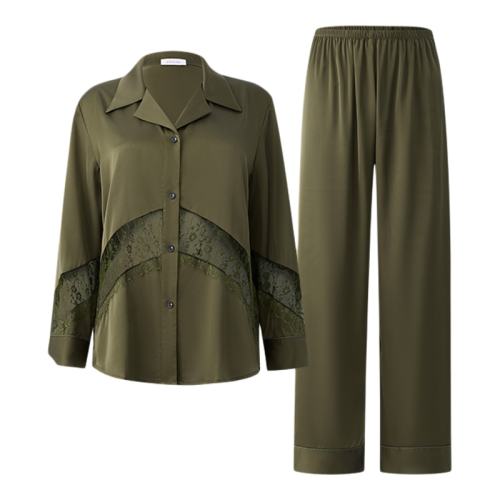 黑色 ML 古今睡衣女春冰丝长袖长裤家居服套装可外穿休闲宽松两件套