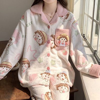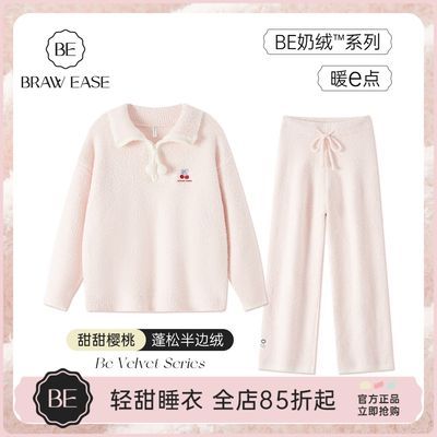 百亿补贴:BE半边绒睡衣粉色冬季女士樱桃珊瑚绒毛绒家居服秋冬长袖加绒冬天
