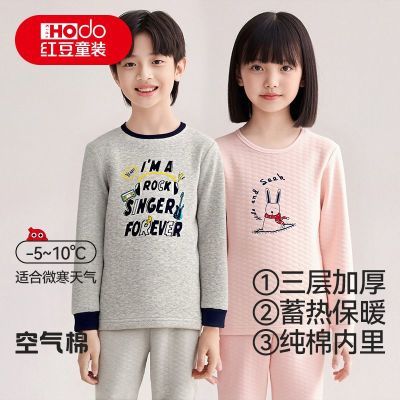 百亿补贴:红豆儿童内衣套装男女童三层薄夹棉保暖内衣中大童秋衣裤宝宝睡衣