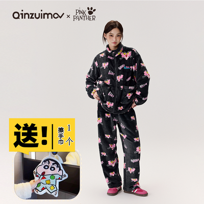 百亿补贴:亲嘴猫【粉红豹】立领卡通法兰绒可外穿少女保暖睡衣家居服套装冬