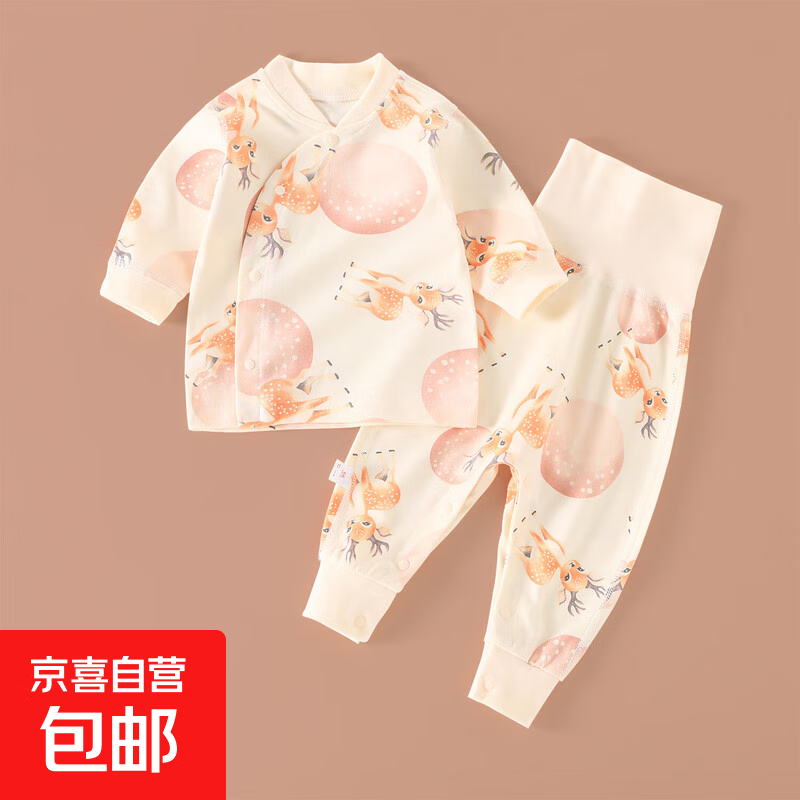 婴儿内衣套装春秋纯棉睡衣新生儿高腰套装宝宝打底秋衣秋裤保暖 森林小鹿 80