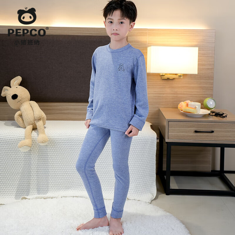 小猪班纳儿童保暖秋衣秋裤套装秋冬新款睡衣男女童内衣柔软亲肤冬季家居服 【德绒羊毛蚕丝套装】深蓝色 130 cm