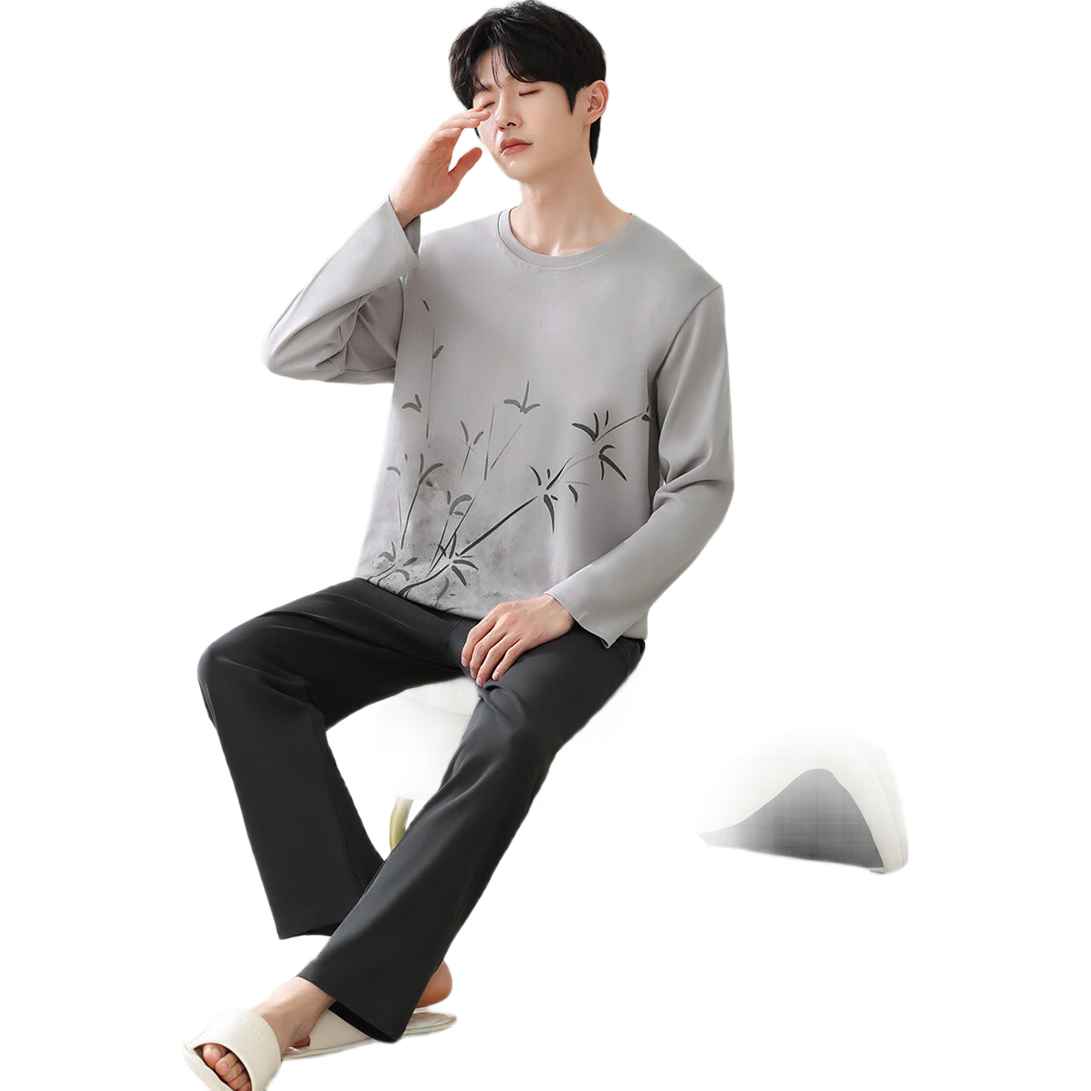 宜而爽男士睡衣男春秋棉质套头长袖圆领套装宽松休闲舒适可外穿家居服