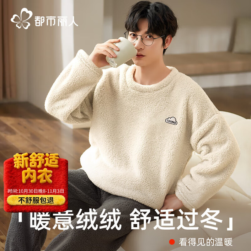 百亿补贴:都市丽人睡衣男2025秋冬款冬季加厚珊瑚绒大码加绒家居服圆领套头可外穿