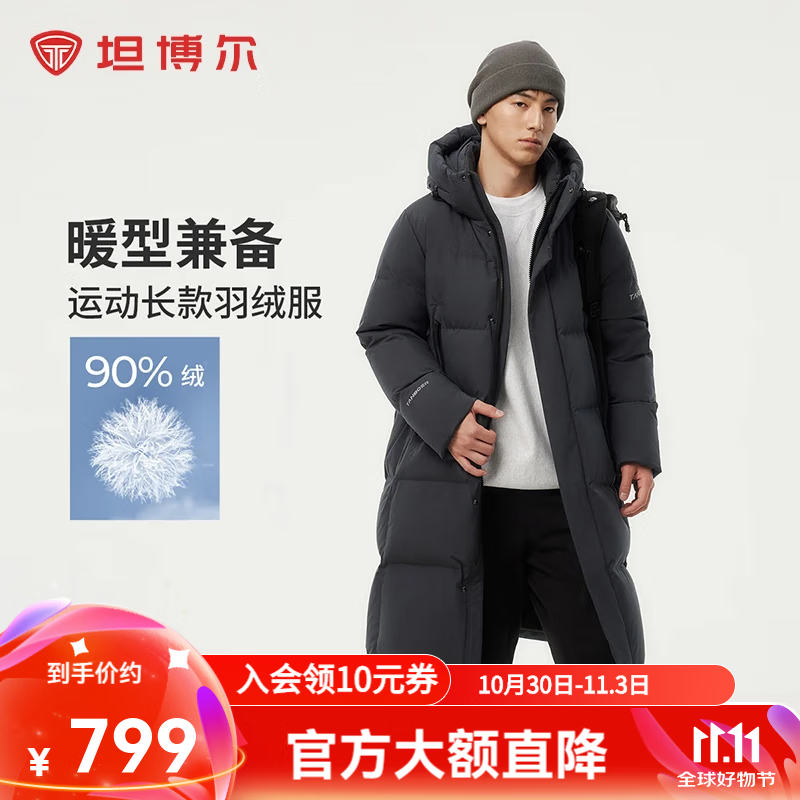 坦博尔连帽羽绒服男长款冬季运动加厚保暖外套TAF550735D 青石灰 L