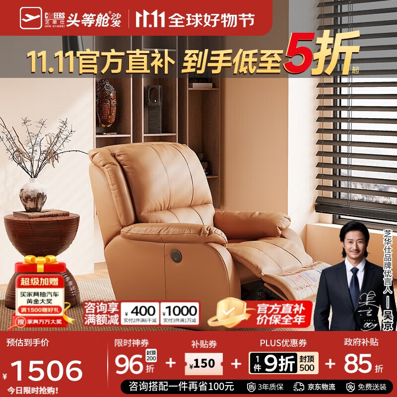 芝华仕(CHEERS)头等舱智能椅皮单椅电动躺摇懒人椅单人沙发芝华士明星椅K621橙