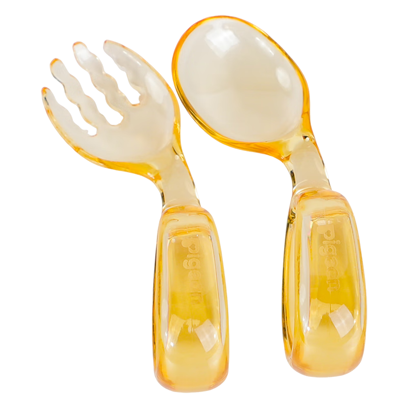 贝亲 PPSU 婴儿学吃饭训练勺 叉勺辅食勺 儿童餐具套装 2件套