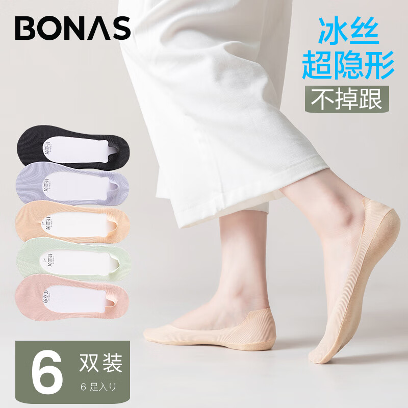 宝娜斯6双装袜子女冰丝船袜夏季隐形袜无痕超薄透气浅口硅胶防脱滑短袜
