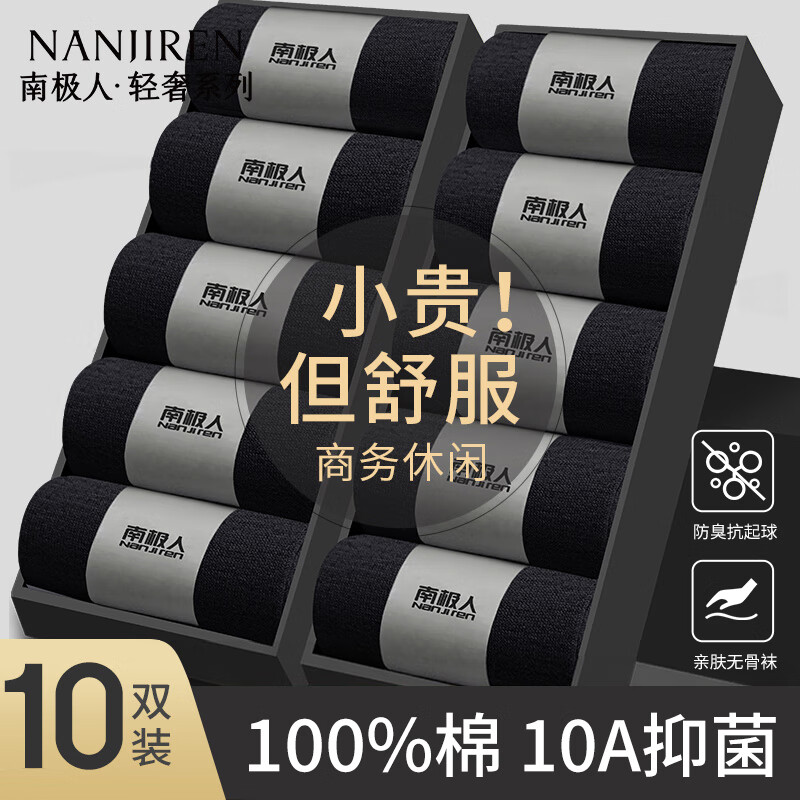 百亿补贴:南极人10双袜子男士袜子秋冬纯棉中筒抗起球休闲商务男袜男士透气袜子