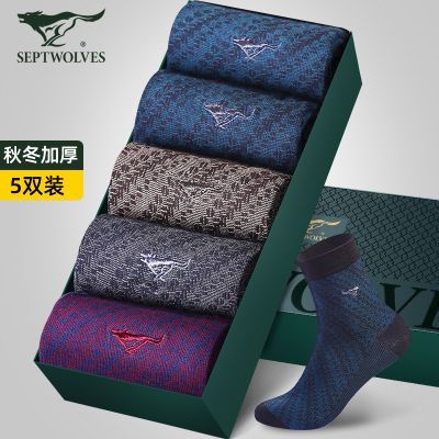 百亿补贴:七匹狼男士袜子秋冬季加厚中筒袜男式商务休闲长袜5双装吸汗透气