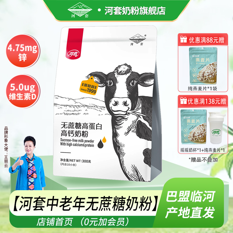 河套无蔗糖奶粉中老年400克高锌高钙多维男女士内小条装营养冲饮