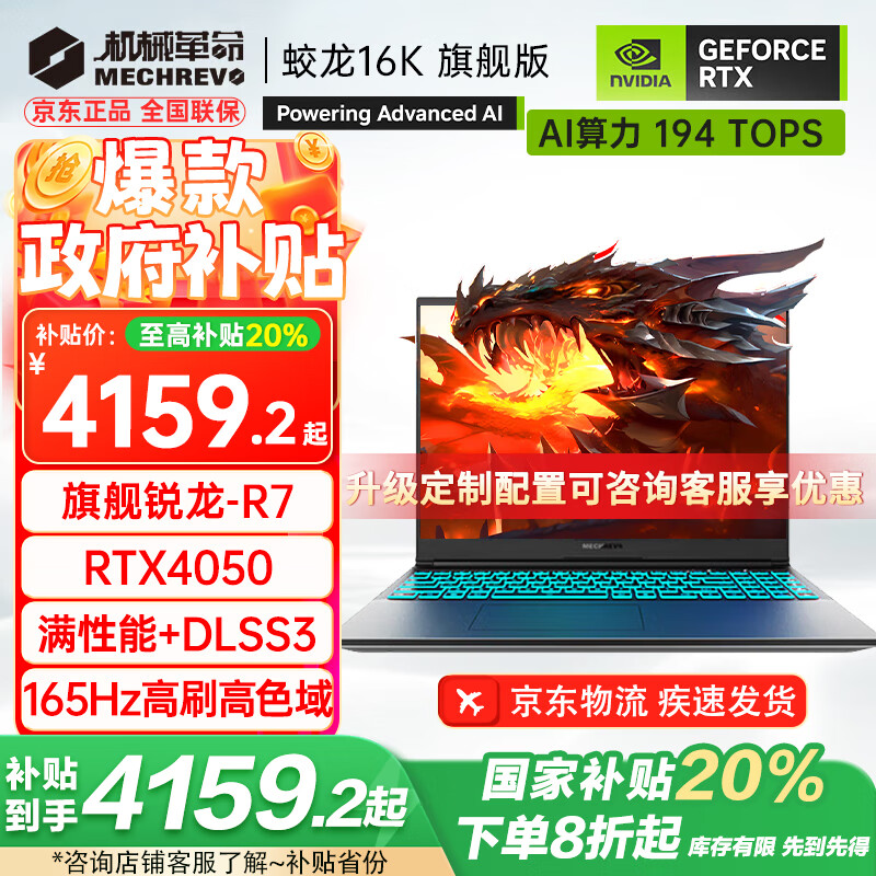 机械革命(MECHREVO)蛟龙16K 2025升级版16Pro游戏本16英寸锐龙7高性能4050高刷学生设计电竞笔记本电脑 旗舰R7/4050/165Hz 16G-512G