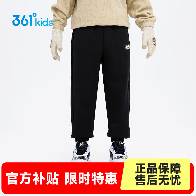 361°童装男童针织加厚长裤年冬季新款小童运动休闲保暖裤子 经典黑 110