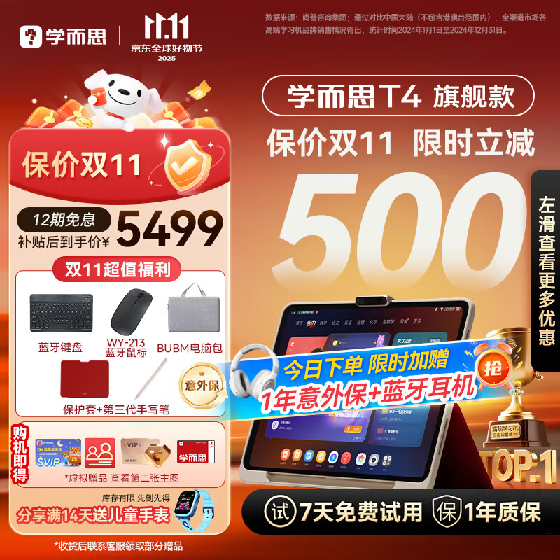 学而思学习机T4 Pro旗舰款2025新版学习平板小学到高中课程同步全科全年龄段AI电脑初中学前 AX23A T4(8+256G)【赠三代手写笔+延保+意外保】