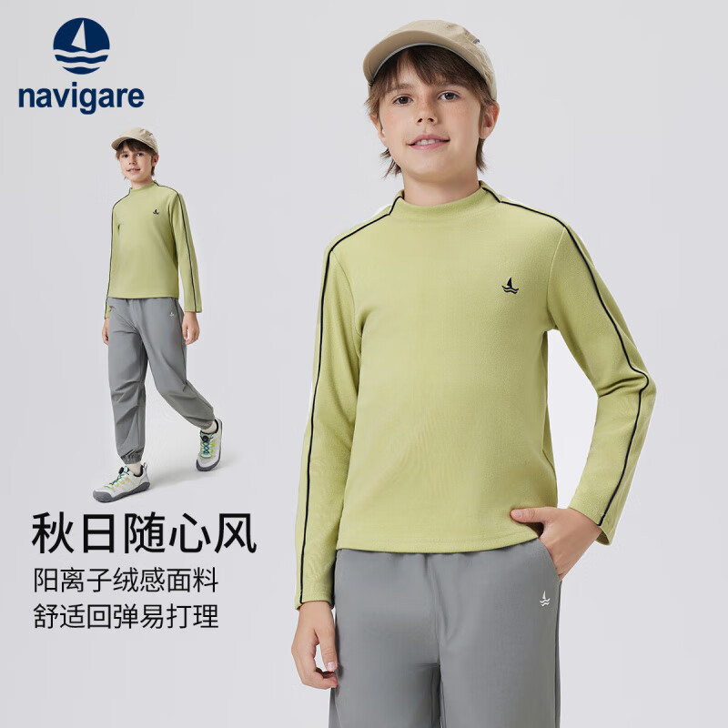 NAVIGARE男童打底衫秋季新款儿童长袖T恤基础百搭舒适柔软2 【亲肤柔软】绿色 150