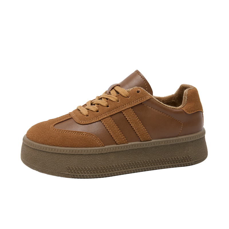 西遇复古德训鞋女2025新款秋冬加绒美式小众百搭休闲鞋子厚底板鞋 咖色 35