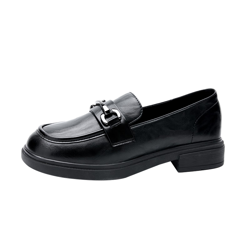 西遇平底乐福鞋女2025新款秋季简约一脚蹬单鞋黑色小皮鞋 黑色 37 (235)