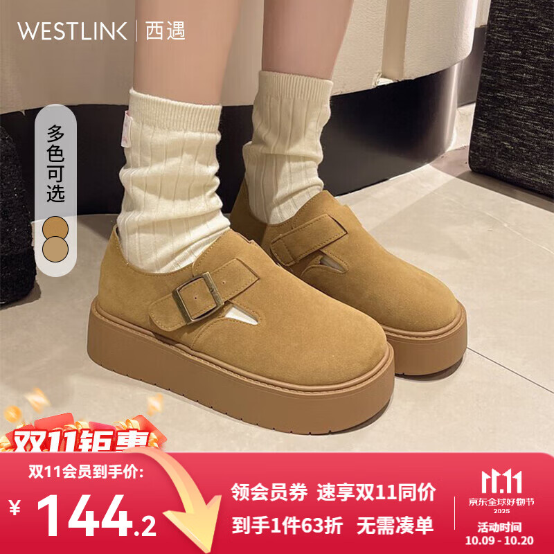 西遇勃肯女鞋2025春季新款百搭一脚蹬全包休闲复古单鞋增高厚底鞋 卡其色 35